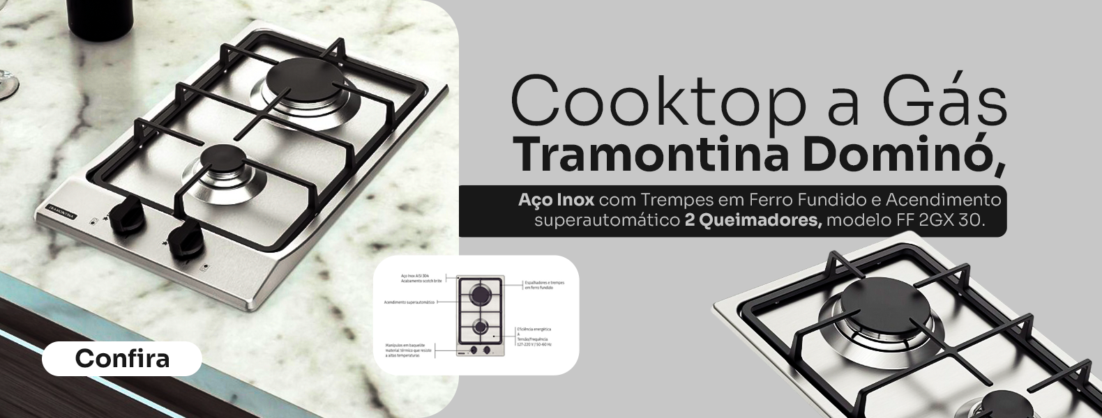 Fogão Cooktop Gás - Tramontina Dominó Ff 2gx 30 Inox 2 Bocas Inox 127/220v